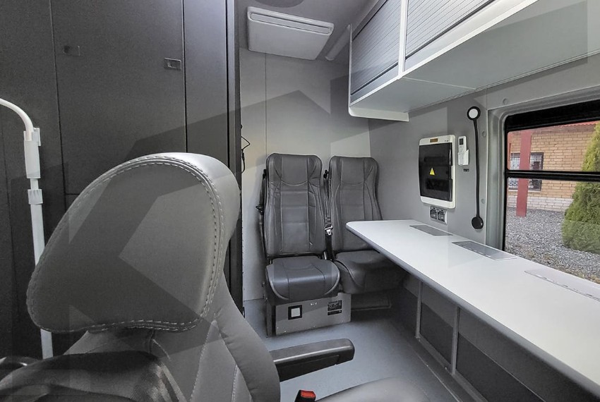 Электрика фургона: светодиодное потолочное освещение, дополнительное освещение рабочих зон, электрощиток с автоматами защиты, розетки 12V, 220V, USB разъемы Розетка внешнего ввода 220V пыле/влагозащищенная, кабель внешнего ввода с УЗО Автономная система энергообеспечения: 2 гелиевых АКБ, инвертор 24/220V Генератор дизельный 13 кВт Отопитель автономный 4 кВт Отопитель салона зависимый 4,2 кВт Кондиционер накрышный моноблочный 2,3 кВт Установка дополнительного испарителя к штатному кондиционеру Приточно-вытяжная вентиляция