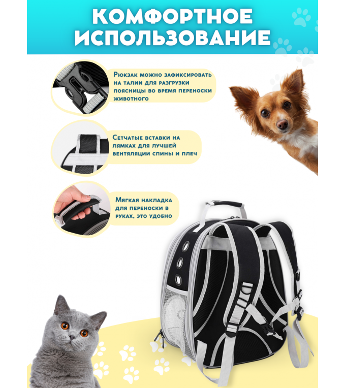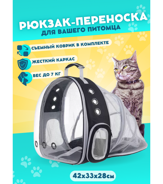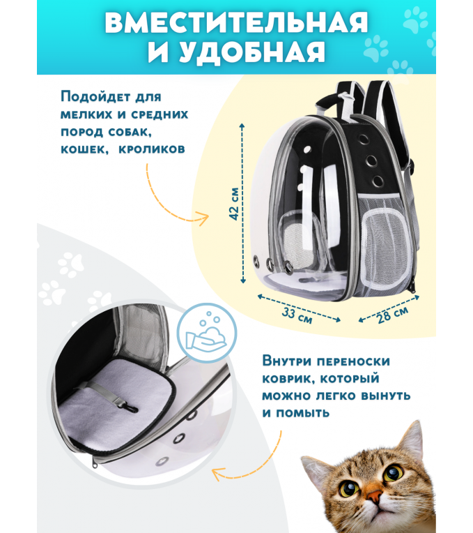 Вав-вав-вав, мяуууу, так будут встречать вас ваши любимые питомцы, если понадобится поехать в ветклинику или полететь на самолете в переноске и, с удовольствием, в нее войдут. Какую же переноску выбрать? Этим вопросом задается каждый любящий хозяин. Наши модели прошли тщательный отбор, ведь у нашей команды есть самые любимые питомцы, которых мы просто обожаем. Обзорный, прозрачный рюкзак переноска палатка для животных, с большой сетчатой поверхностью, c отличным обзором виде иллюминатора и вентиляцией. С ним ваши руки будут свободны, а движения вашего питомца будут свободными, т.к. есть свободное пространство. Эту модель выгодно отличает возможность разложить ее в полноценную палатку для отдыха вашего питомца, где бы вы ни находились. Материал изделия – пластик, обладает такими как водонепроницаемость, водоотталкивающие свойства, износостойкость, грязеустойчивость, термоустойчивость, высокая прочность, простота ухода, повышенная устойчивость к истиранию. Идеальна для животных: кролик, котята, шиншилла, корги, щенки, собачки, шпиц, кот, грызуны, басик, мелкие породы собак, средние, крупные, большие породы кошек. Переноска для животных предназначена для переноски кошек и собак до 10 кг. Переноска для мелких пород собак незаменима в путешествиях, в поездке к ветеринару и транспортировке на любые расстояния. Большая переноска для самолета, кошачья переноска в сложенном виде очень компактна и не займет лишнего места дома. Отличительная особенность переноски бренда mimizoo – универсальность, мобильность и многофункциональность. Сумка переноска для животных легкая и удобная в использовании. Она имеет прочное дно с жестким основанием и прозрачную сетку, которая обеспечивает вентиляцию и светопроницаемость. Крепкое и мягкое дно вынимается на случай стирки. Наличие надежной фурнитуры, прочных молний и сетки дверки предотвратят непреднамеренный побег животного. В карманы можно положить корм и лакомства, лакомство для кошек, лакомства для собак, лакомства для животных, зоотовары. Удобная прочная ручка сверху облегчит транспортировку питомца. Прочный ремень через плечо позволит освободить ваши руки. Специальные ножки, расположенные на днище переноски, защищают ее от грязи. !!!!!