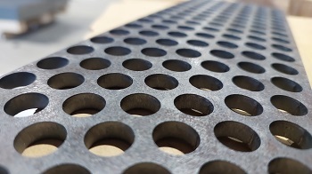 Завод СТиВ предлагает производство на заказ перфорированных металлических листов. Перфорация выполняется на японском координатно-пробивном прессе с ЧПУ Amada. Максимальная толщина обрабатываемого металлического листа - 6 мм. Возможно изготовление перфолиста длиной до 7 м с рисунком RV (круглые отверстия, смещенные ряды). Другие виды перфорации, включая произвольный рисунок по чертежу, также возможны.