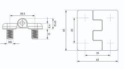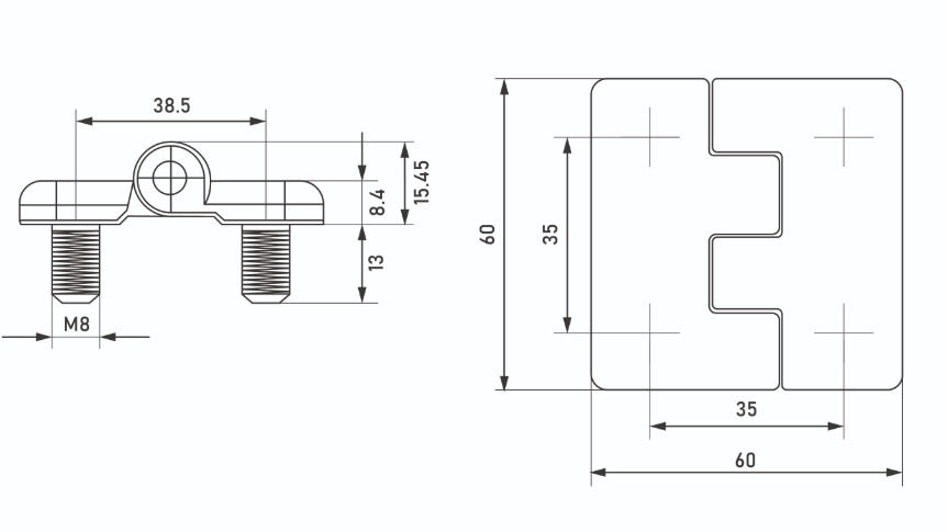 Петля листовая 60х60мм со шпильками М8х14,покрытие хром, материал корпуса - сплав ЦАМ, материал штифт - оцинкованная сталь, в комплект входят гайки М8 с прессшайбой - 4шт.