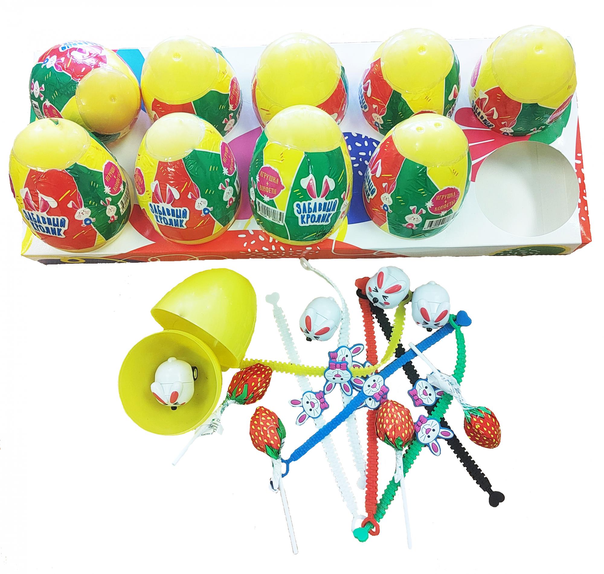 Пластиковое яйцо с карамелью и игрушкой нашего производства. «Забавный Кролик» — это замечательная серия игрушек в яйце-сюрпризе, которая очень нравится детям, ведь всегда так интересно, какая игрушка попадется на этот раз. Каждая новая игрушка вызывает море положительных эмоций у ребенка.