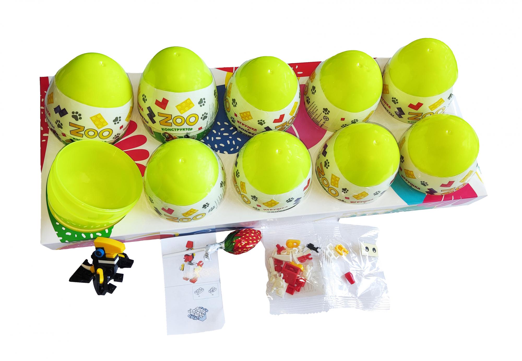 Пластиковое яйцо с карамелью и игрушкой нашего производства. «ZOO» — это замечательная серия сборных игрушек в яйце-сюрпризе, которые очень нравится детям, ведь всегда так интересно, какая игрушка попадется на этот раз. Каждая новая игрушка вызывает море положительных эмоций у ребенка.