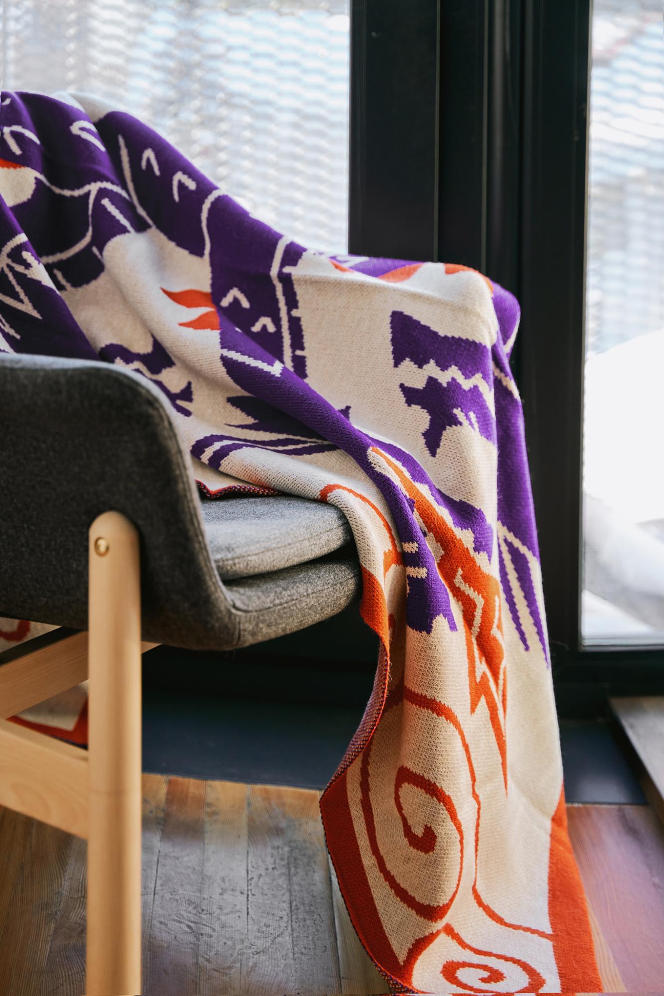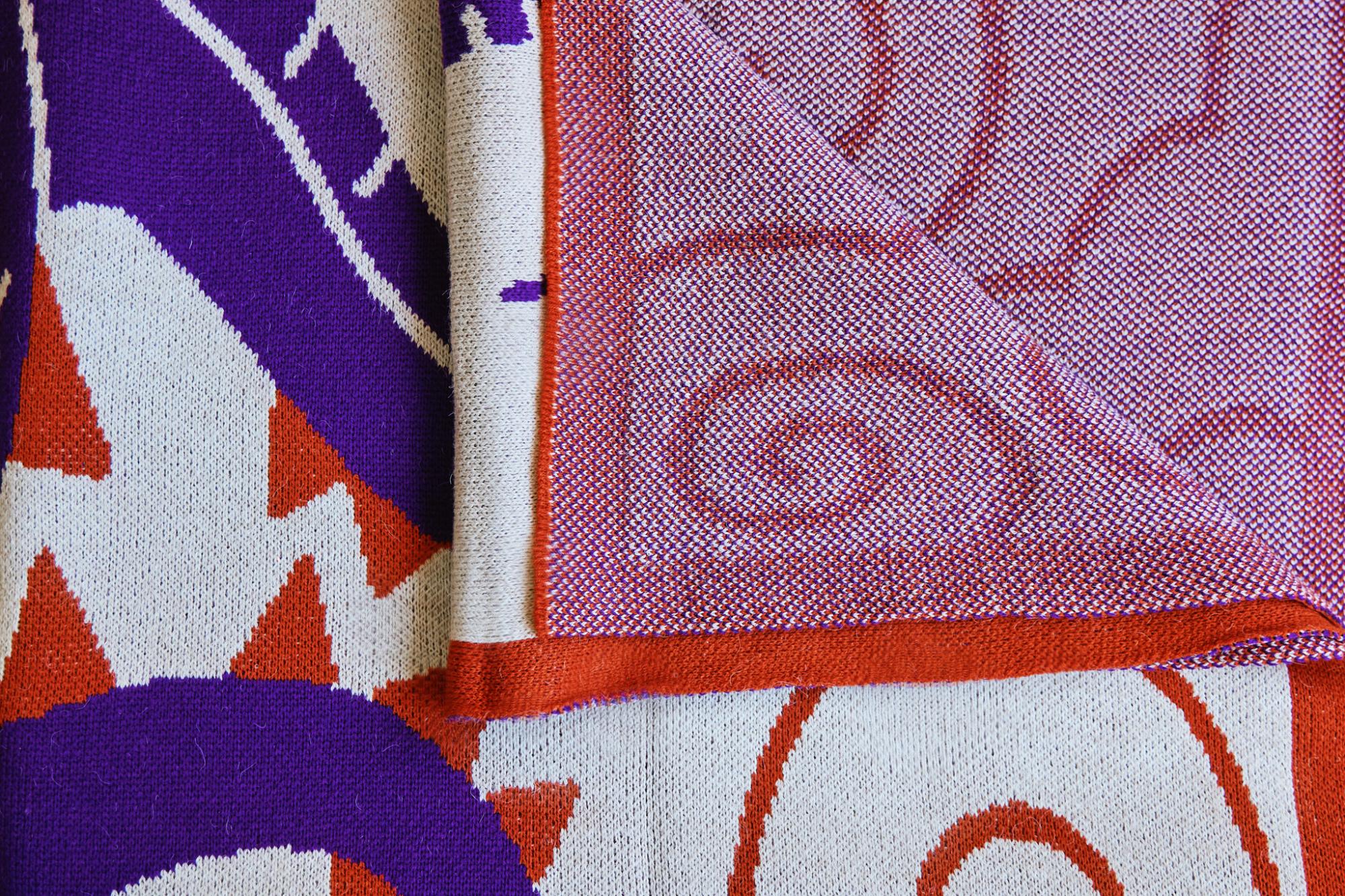 Плед с зеркально вывязанным логотипом и индивидуальным рисунком в фирменной цветовой гамме Вашей компании.