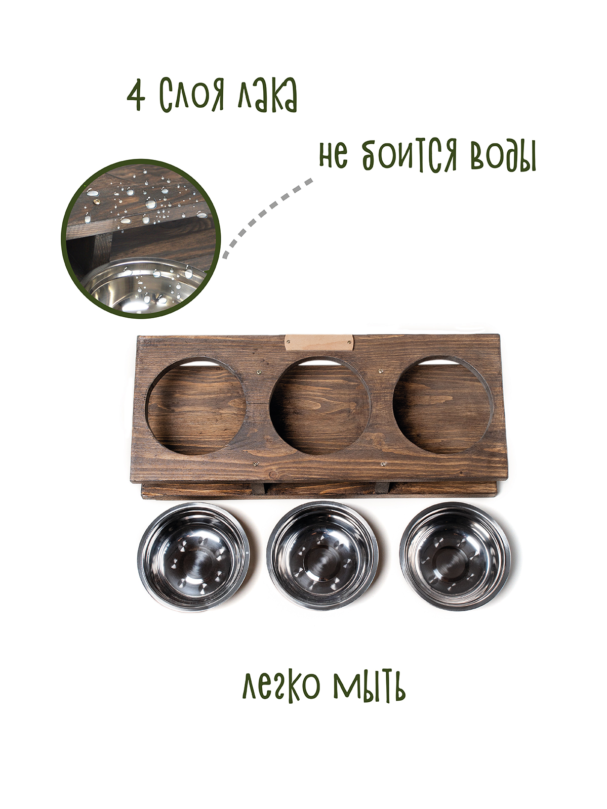 - Потому что подставка покрыта 4мя слоями водоотталкивающего безвредного для питомца французского лака, не боится брызг и воды.