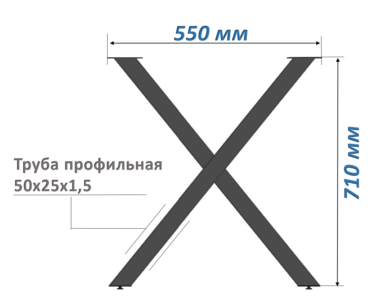 Подстолье Х-образное в стиле лофт (LOFT) из металла для стола гармонично впишется в интерьер (домашний, офисный).
