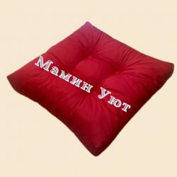 Размер 60*60 см. Материал: Смесовая саржа 65% хлопок,25% п/э. с водоотталкивающей пропиткой, наполнитель дробленный поролон, толщина 10 см.,стяжка пуговицами. Цвета: красный, черный, коричневый.