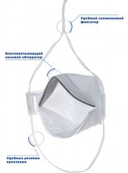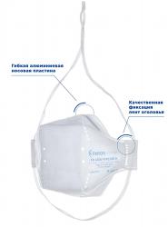 Преимущества складной формы сразу ощутимы при использовании, полумаска компактна - удобно хранить и переносить. Ленты оголовья, с удобным и простым силиконовым фиксатором, а также гибкий алюминиевый носовой зажим надежно фиксируют респиратор на лице и помогают настроить респиратор под любой тип лица. Крепление лент оголовья к основанию полумаски без использования металлических скоб и прямой пайки лент к респиратору, а с помощью продевания лент через «петлю», образованную на основании полумаски, обеспечивает надежность крепления без возможности отрывания лент от основания респиратора. Наличие носового обтюратора препятствует проникновению загрязнённого воздуха в подмасочное пространство, а также исключает возможность попадания выдыхаемого воздуха в глаза, что делает ношение респиратора комфортным, а при ношении защитных очков линзы не подвергаются запотеванию.