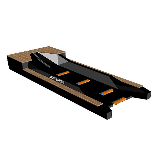 Модель сухой стоянки для гидроцикла размером 4х1,5 м. Для легкого подъема и спуска судна в зоне стоянки предусмотрены полиуретановые ролики.