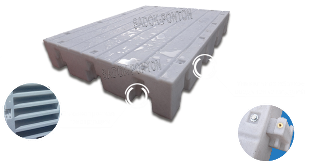 Понтонный модуль изготовлен из пластика. Предназначен для постройки различных плавучих сооружений: пирсов, мостков, причалов, пешеходных мостов и пр. Обладает уникальным крепежом.