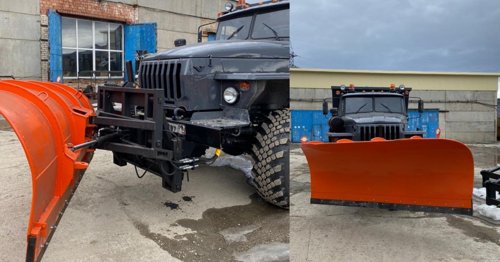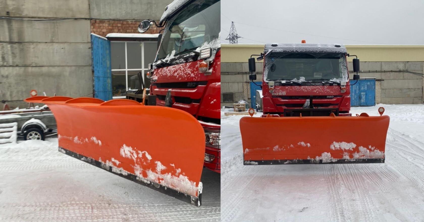Поворотный отвал с тех. пластиной нашего производства. Подходит как для уборки городских улиц, так и магистралей.