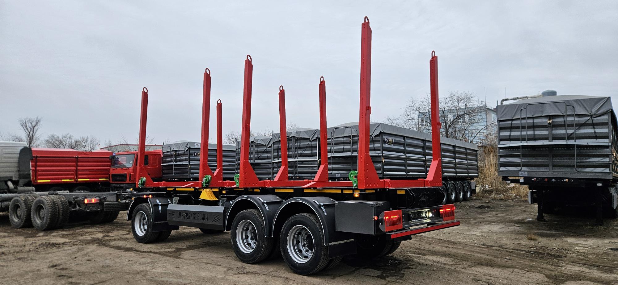 Платформа для перевозки леса в сортиментах с конниками: прицеп сортиментовоз