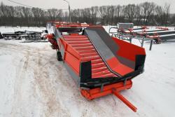 Кроме этого, данный бункер изготавливается в премиальной комплектации: с пультом дистанционного управления, автоматическим раздвижением вальцов, резино-металлической защитой бортов кузова, встроенным прутково-встряхивающим транспортёром для четвертой фракции, с автоматической регулировкой скорости донного конвейера.