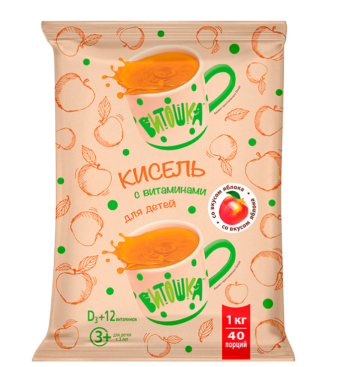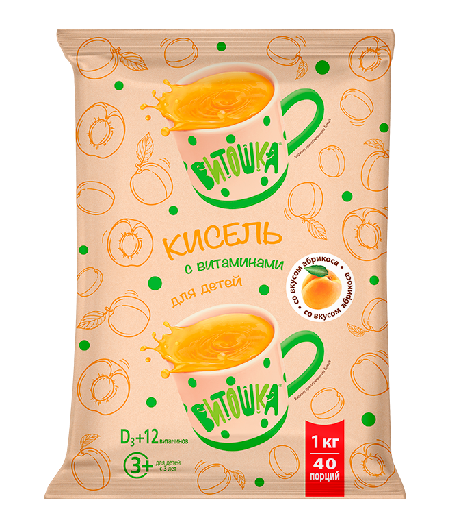 Регистрация - СГР Вкусы: абрикос, клубника, яблоко. Упаковка: 500/1000г Количество порций в упаковке: 20/40 Дозировка: 25 г на 180 мл Короб: 25/12 упаковок в коробе Предназначен в качестве дополнительного источника витаминов для детей дошкольного и школьного возраста. Содержит инулин. Рекомендован для приготовления киселя в организованных коллективах, лечебно-профилактических учреждениях, домашних условиях, а также в системе общественного питания.