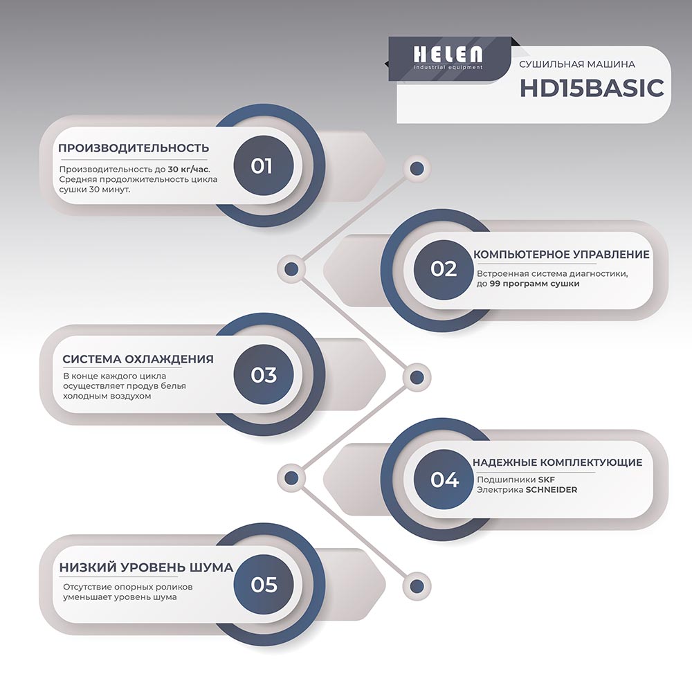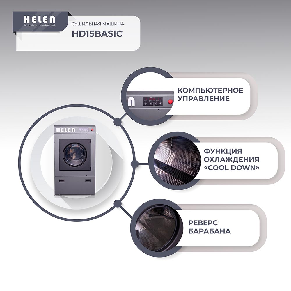 - Сушильная машина Helen HD15Basic отличается простотой использования, надежностью и коротким сроком окупаемости.
