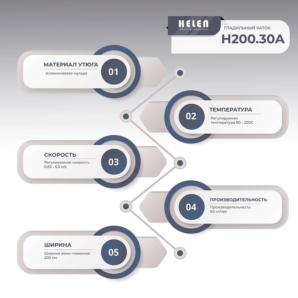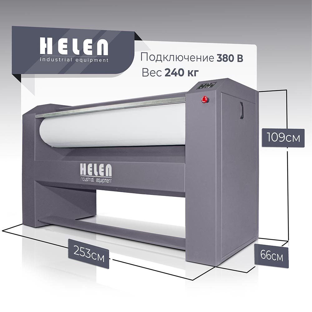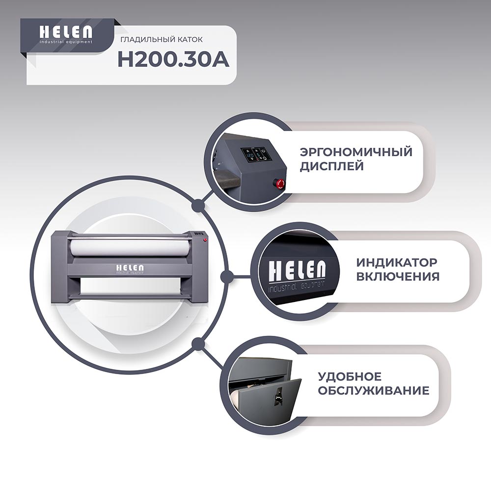 - Гладильные катки Хелен серии 30А оснащены вытяжным вентилятором, который постоянно просушивает чехол вала. Это улучшает качество глажения и повышает долговечность обмотка.
