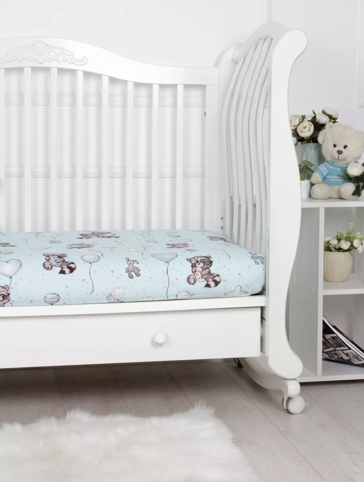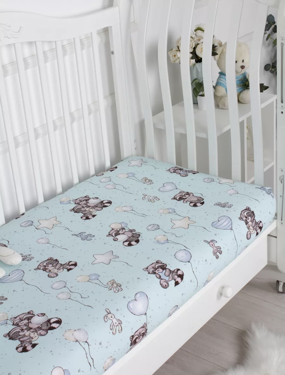 Простыня на резинке на кроватку 120х60, идеально сидит на матрасике. За счет резинки не съезжает, не скатывается, нет необходимости постоянно ее поправлять. Изготовлена из ткани 100% хлопок, поэтому подходит к использованию с самого рождения малыша. Ткань хорошо впитывает, пропускает воздух, поэтому ребенок не будет потеть, лежа на такой простынке. Принт яркий, при правильной стирке не потеряет цвет.