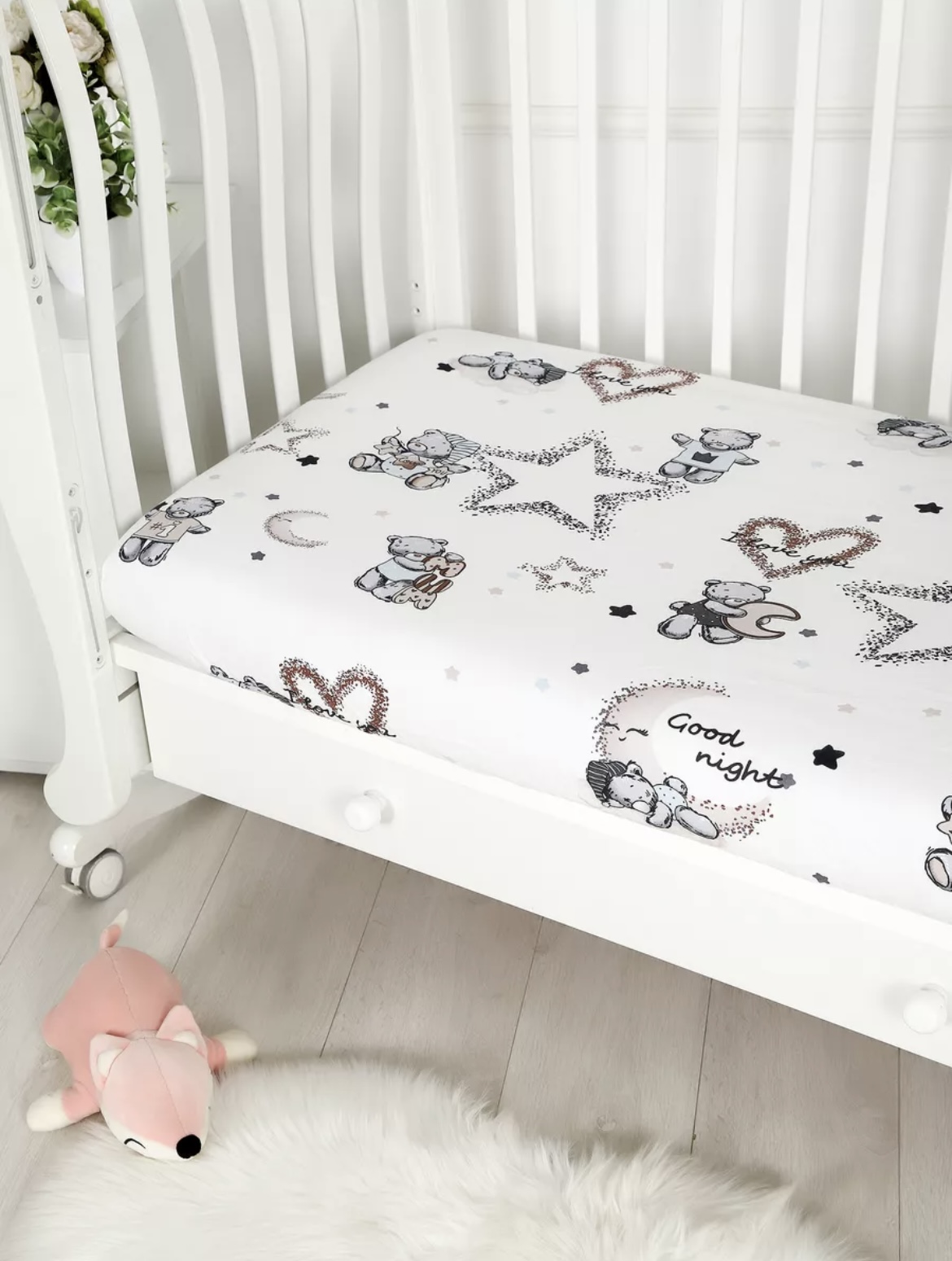 Простыня на резинке в детскую кроватку Поплин 7595/3 «Мишки» бежевый