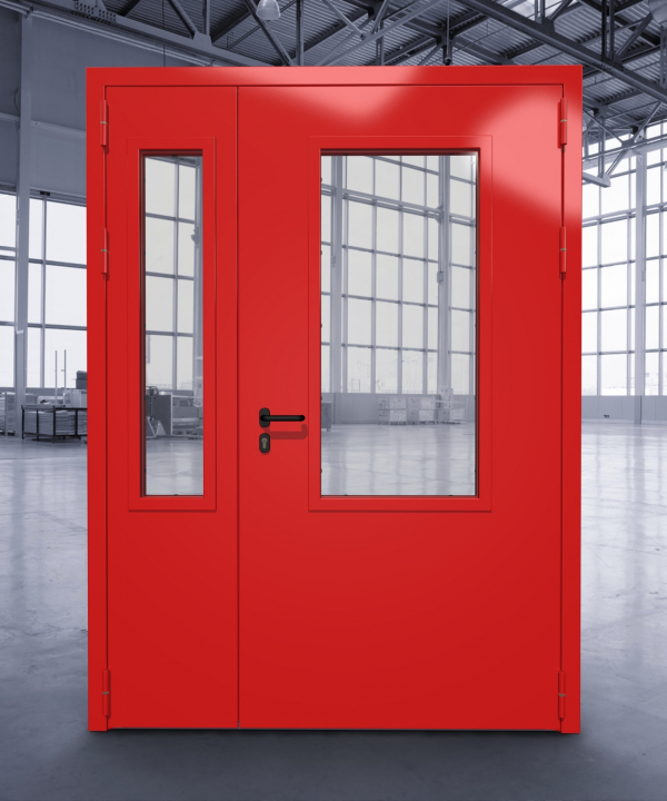 Противопожарные двери изготавливаются в однопольном и двупольном варианте, глухие и остеклённые (до 25% светового проёма). Цельногнутый дверной короб с двумя притворами и несколькими вариантами исполнения конструкции двери с широким набором доступных опций.