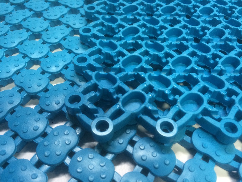 Использование данного покрытия препятствует распространению грибковых заболеваний, исключает контакт босых ног с холодным и влажным полом, верх покрытия сделан так что бы оказывать массирующие воздействие на ступни ног. Наипростейшая технология сборки покрытия позволяет собирать модули без применения инструментов, обходясь только руками.