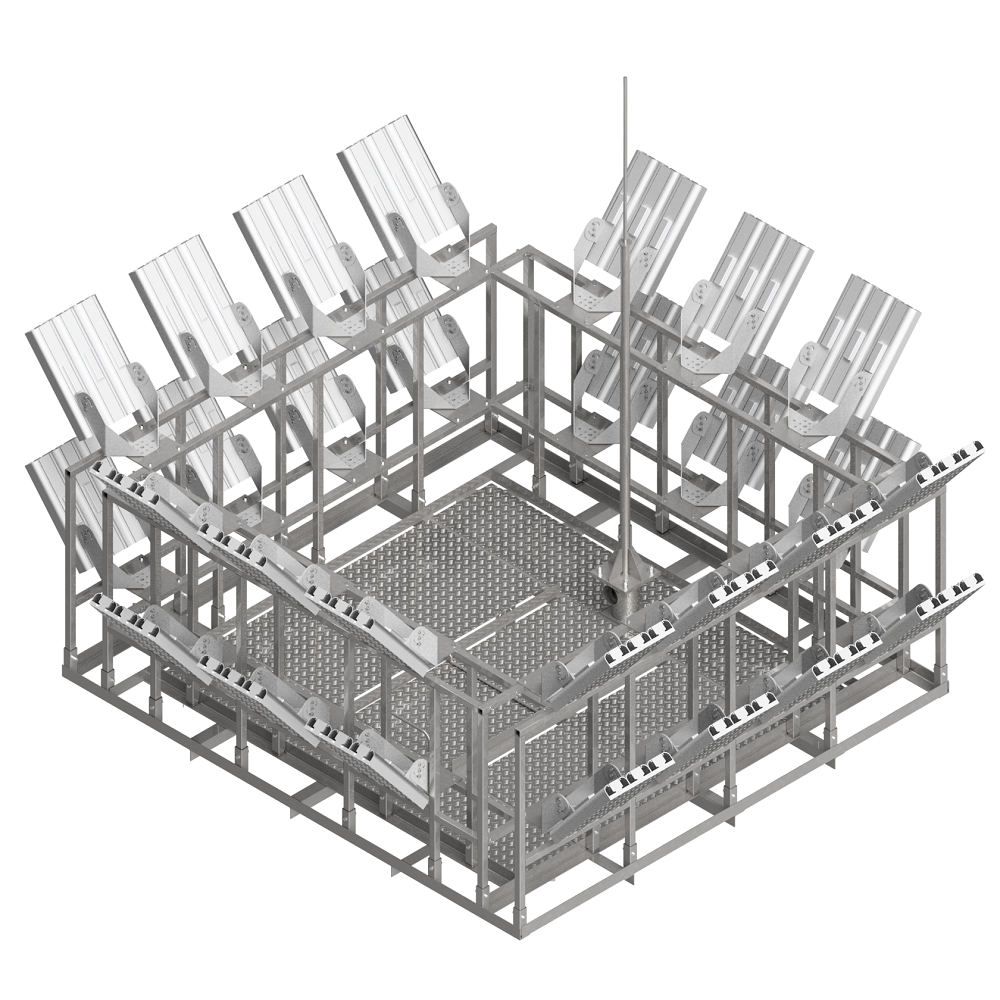 — Имеет высокие показатели жёсткости, отвечает повышенным требованиям надёжности и устойчивости. Открытая конструкция мачты позволяет в режиме реального времени контролировать состояние металлоконструкций, обеспечивая бесперебойную работу всех систем, в самых суровых погодно-климатических условия.