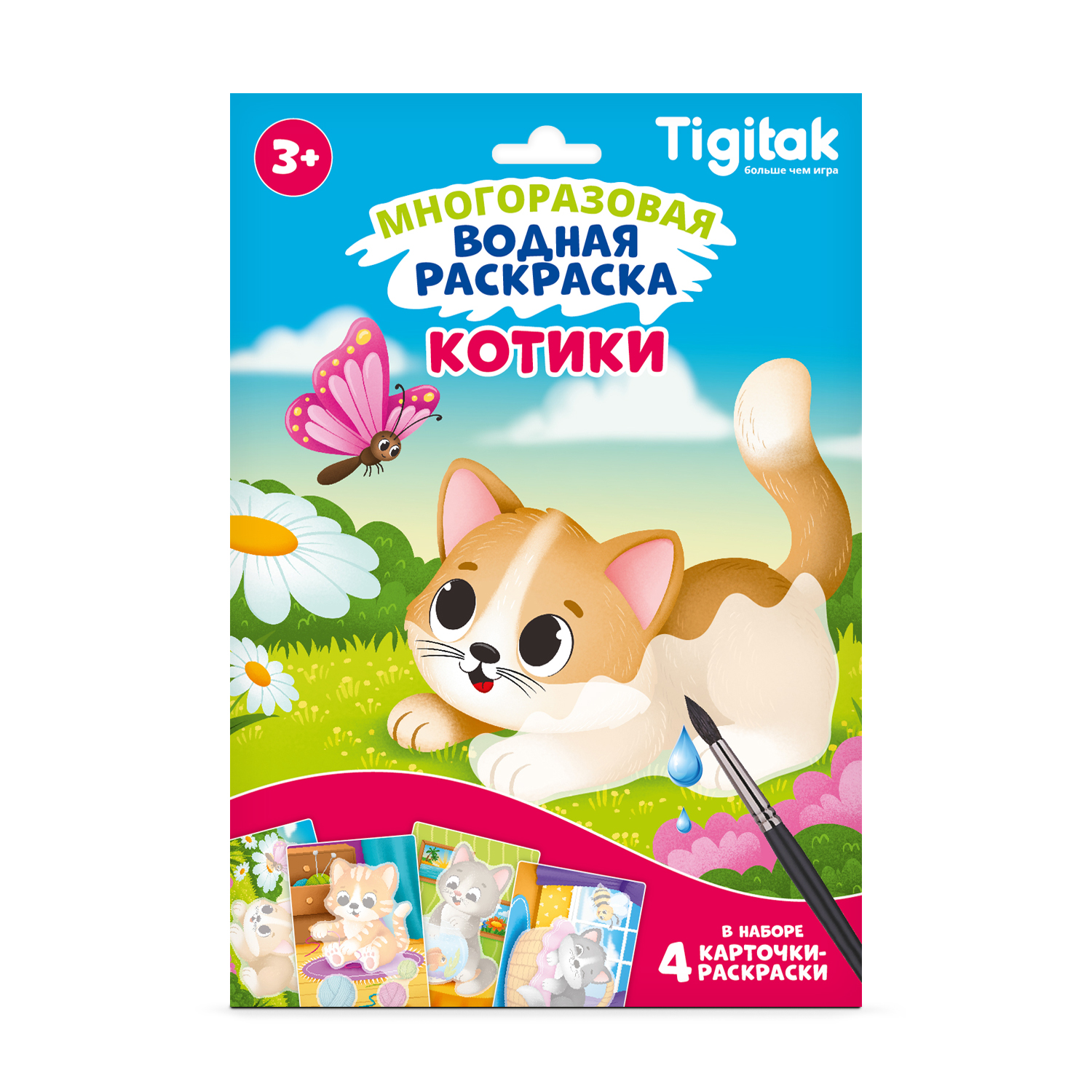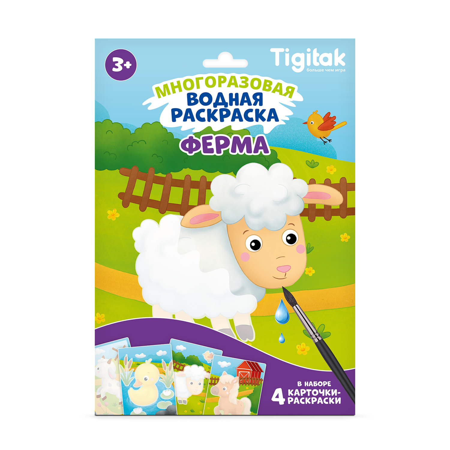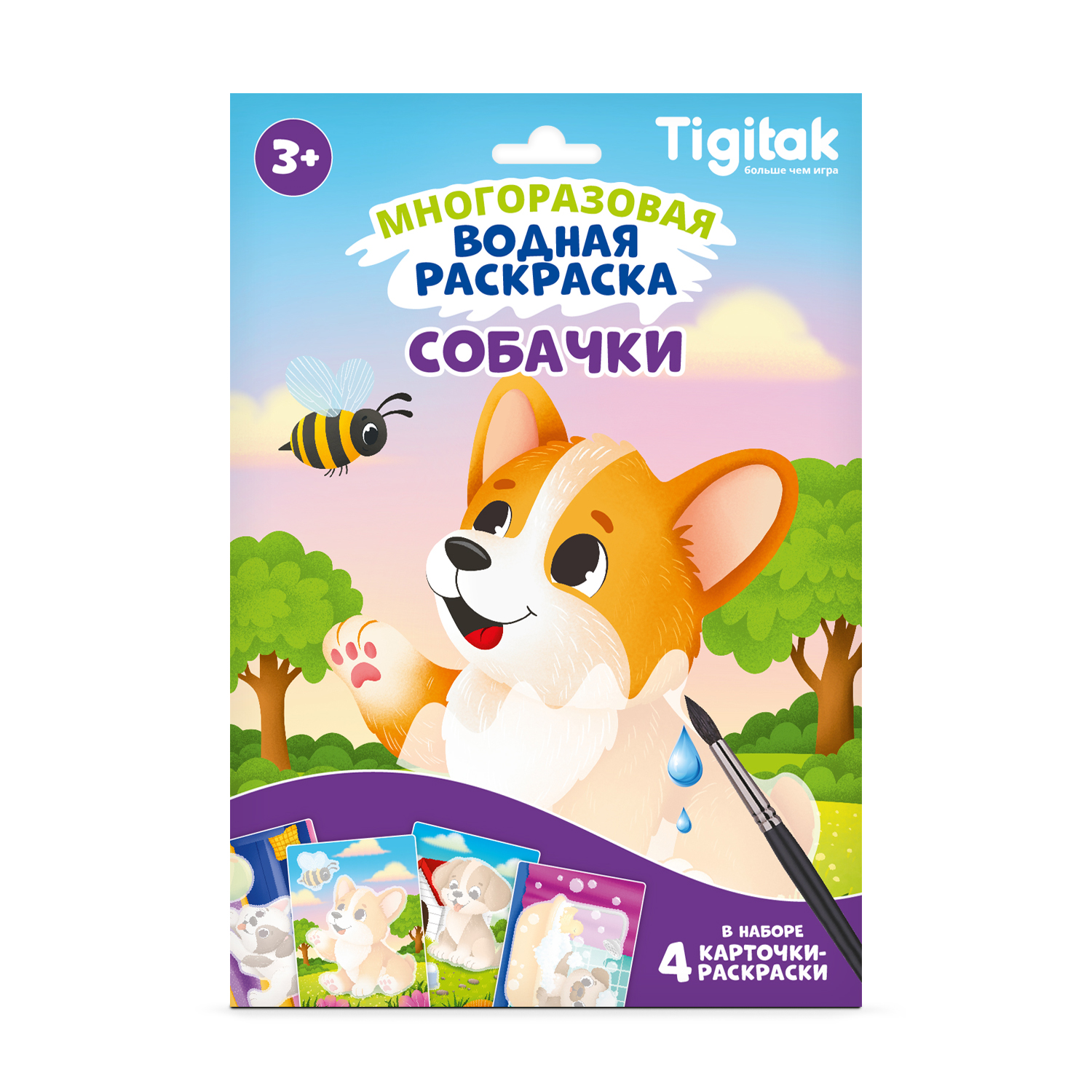 Многоразовая водная раскраска с различными персонажами станет отличным досугом для маленького непоседы. В наборе представлено 4 карточки-раскраски с разными тематическими иллюстрациями. Размер одной карточки 16*23 см. Кисть в комплект не входит.
