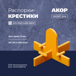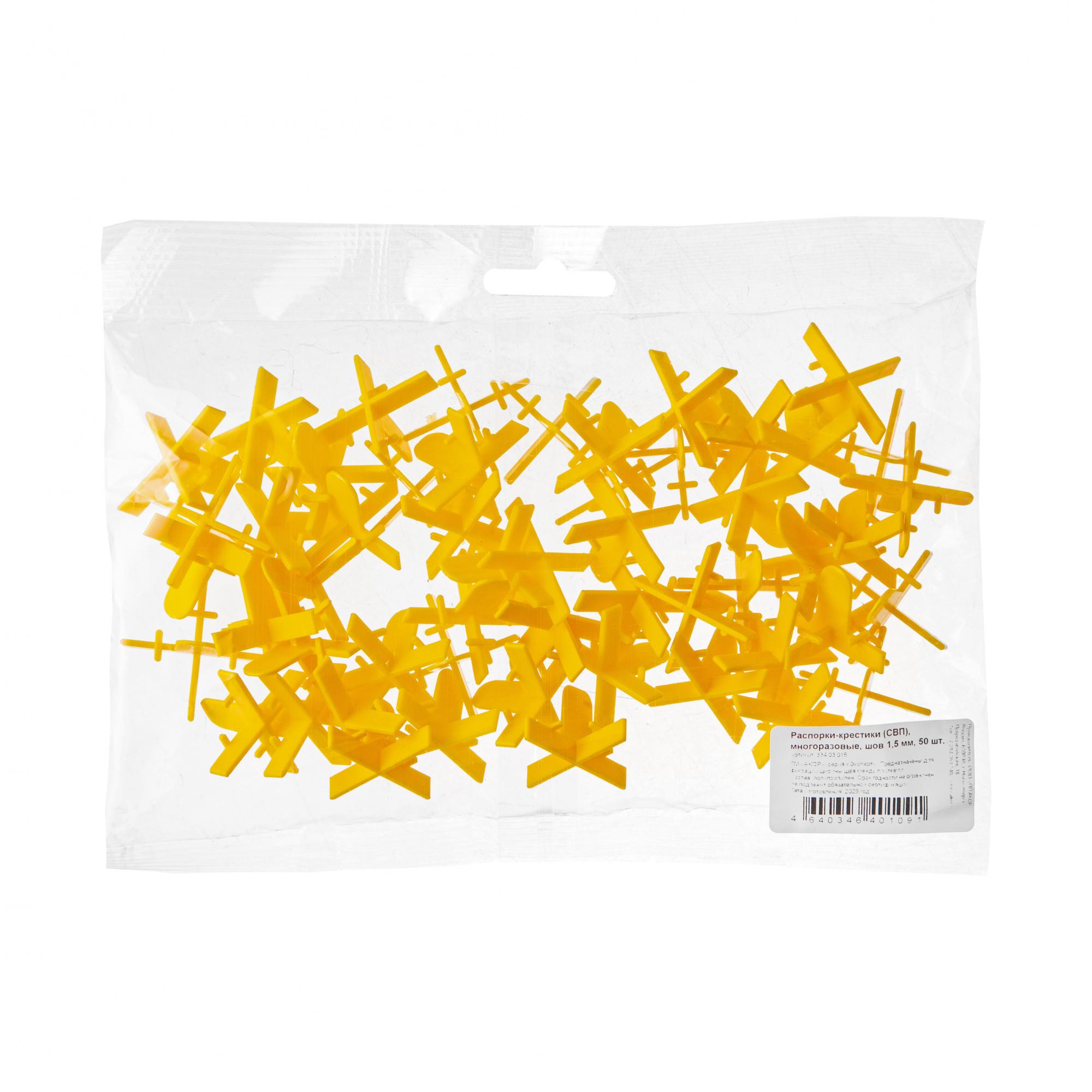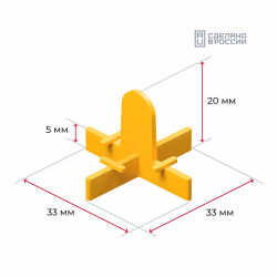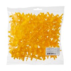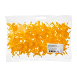 Желтые многоразовые распорки в форме крестика предназначены для швов шириной в 1,5 мм. Держатся на специальных опорах и легко вытаскиваются после того, как схватится клей. Подходят для плитки, керамогранита и мрамора. Используются для большинства видов швов. Упакованы в пакетики по 50, 100 и 200 штук.