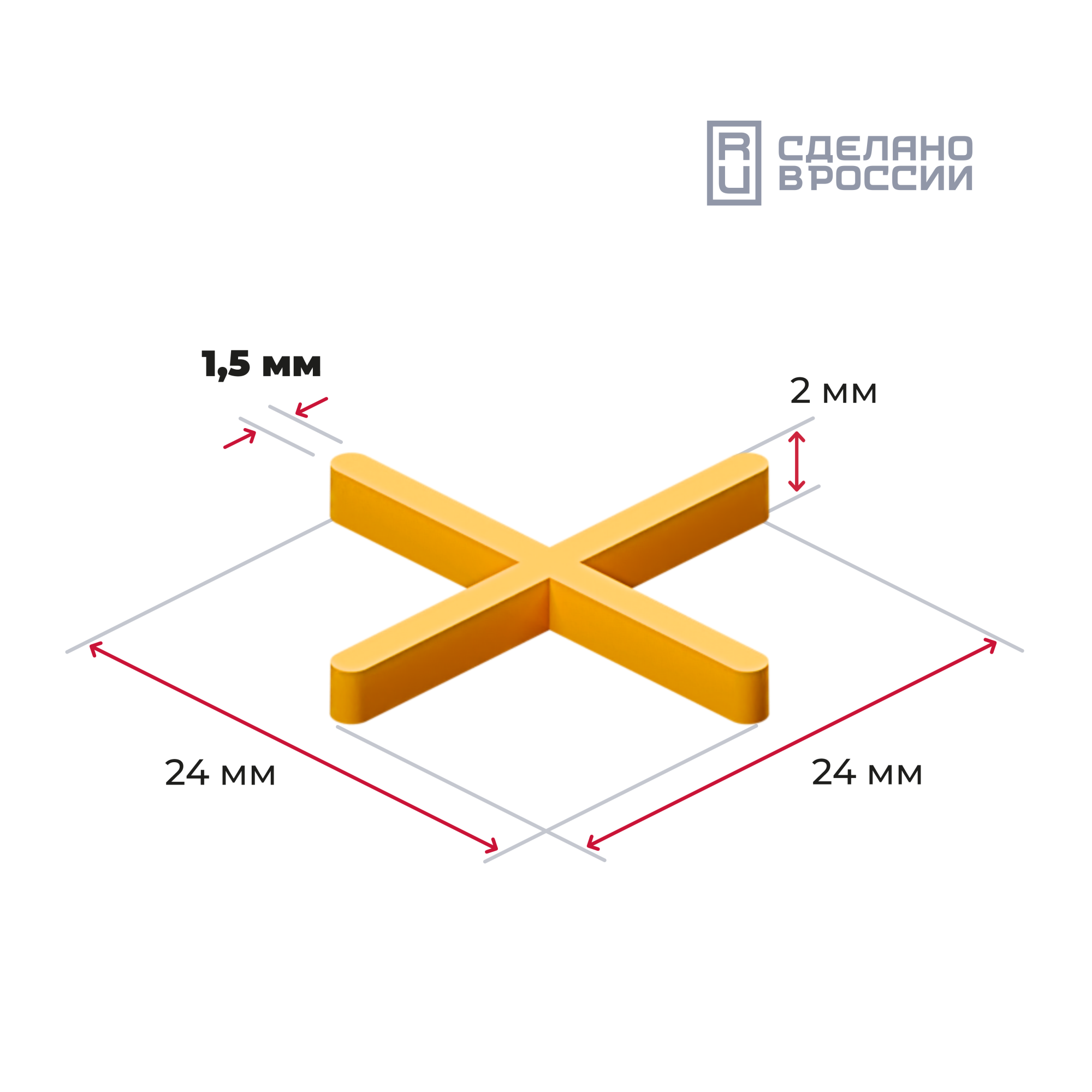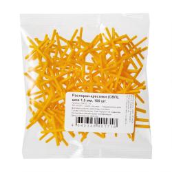 Желтые распорки в форме крестика предназначены для швов шириной в 1,5 мм. Подходят для плитки, керамогранита и мрамора. Используются для большинства видов швов. Упакованы в пакетики по 50, 100 и 200 штук.