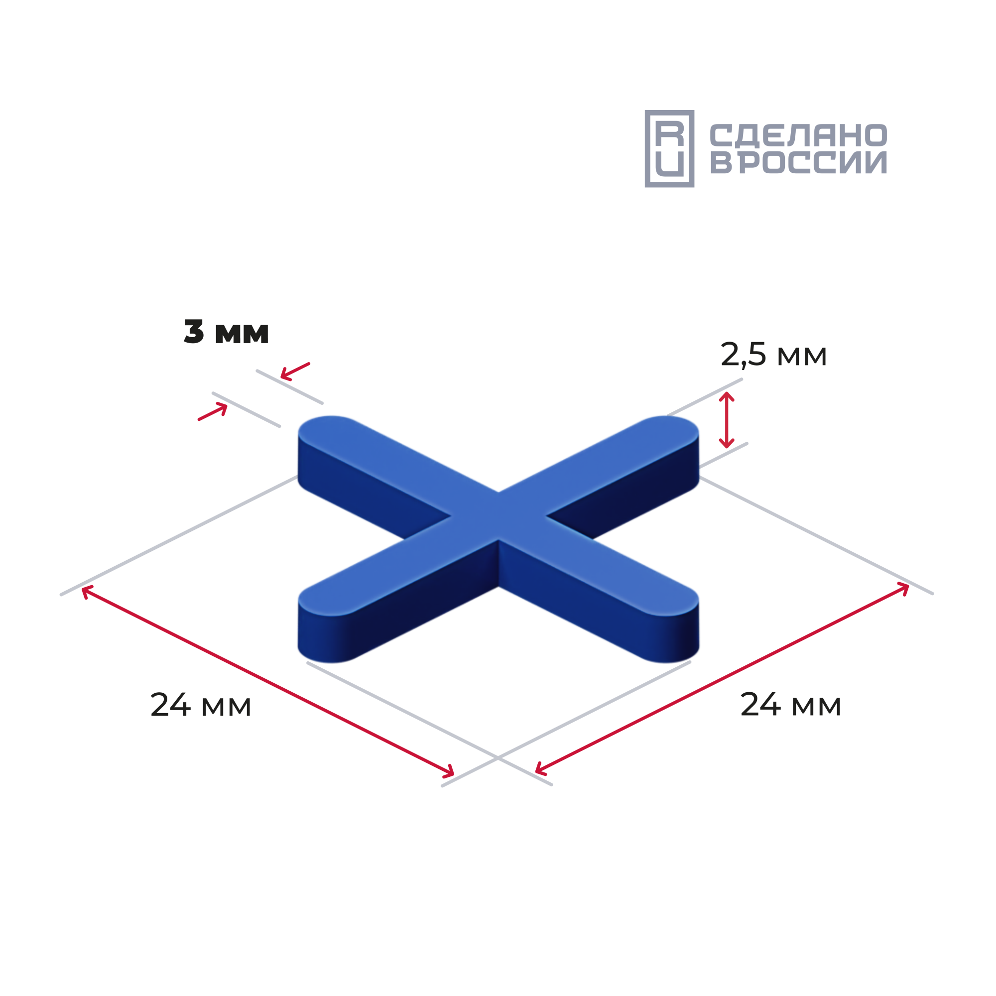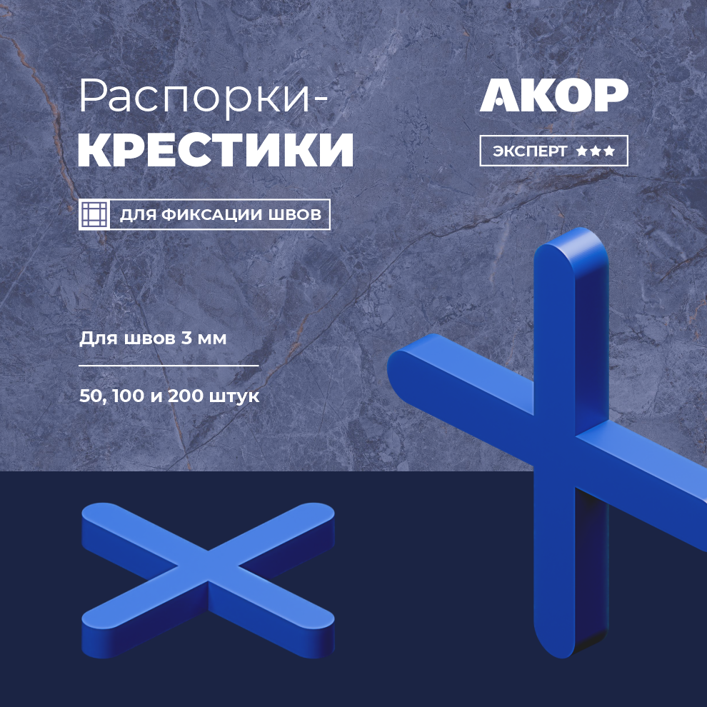 Синие распорки в форме крестика предназначены для швов шириной в 3 мм. Подходят для плитки, керамогранита и мрамора. Используются для большинства видов швов. Упакованы в пакетики по 50, 100 и 200 штук.