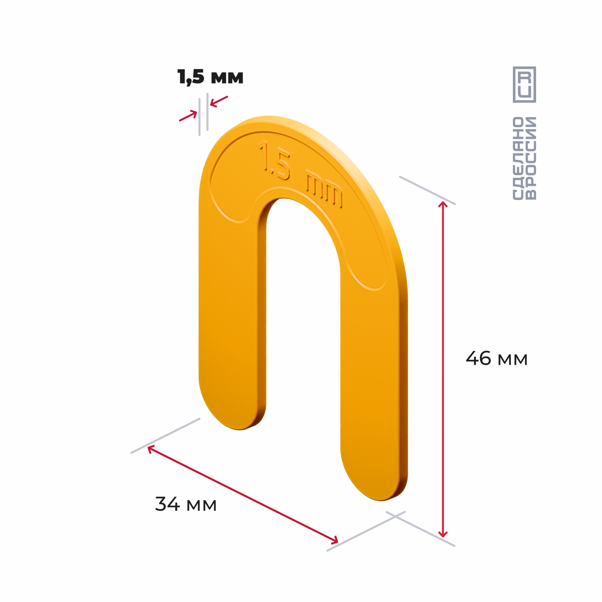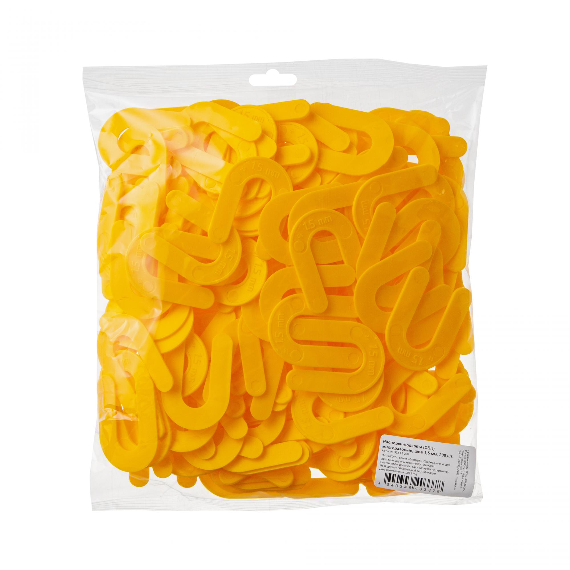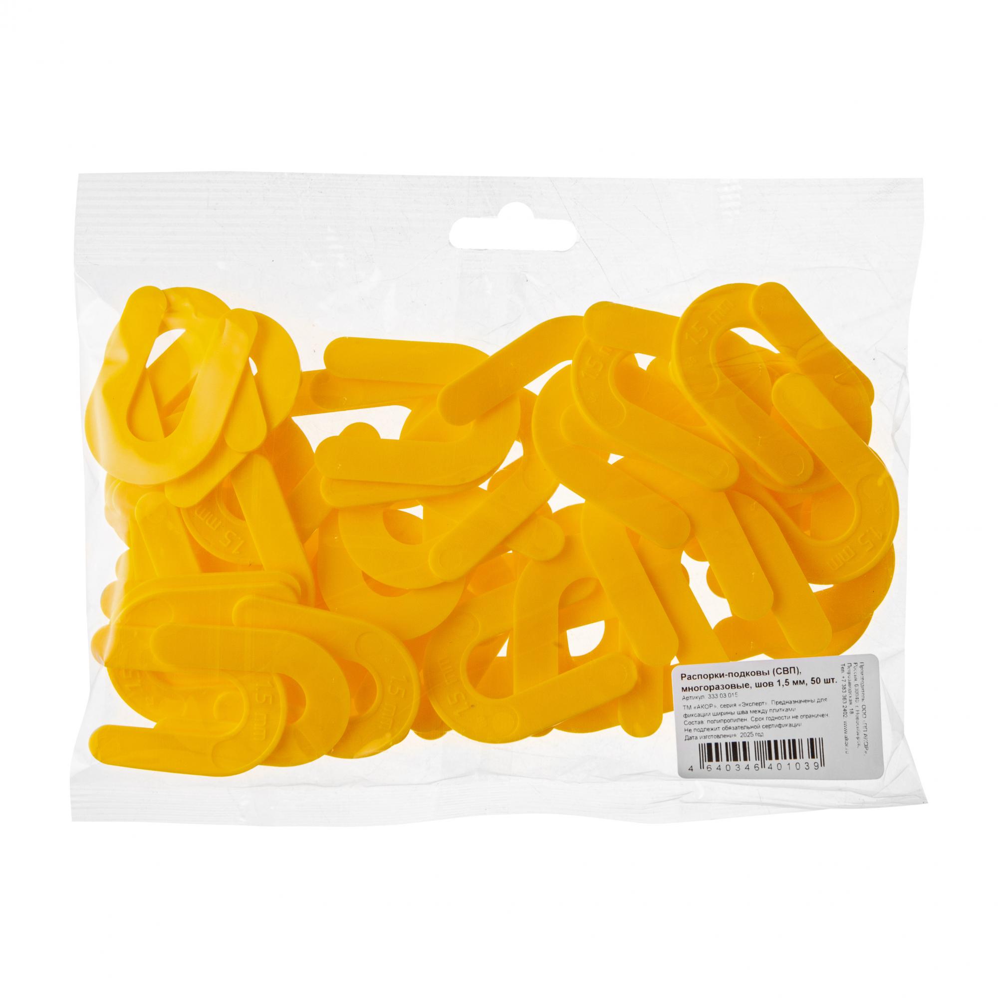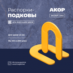 Желтые многоразовые распорки в форме подковы. Используются для швов шириной в 1,5 мм. Распорки-подковы крупные, что позволяет легко извлечь их после того, как схватится клей. Подходят для плитки, керамогранита и мрамора. Могут использоваться для всех видов швов. Упакованы в пакетики по 50, 100 и 200 штук.