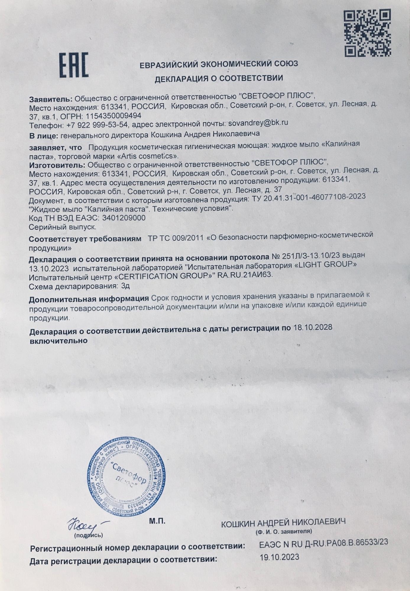 Данная паста изготовлена в соответствии с ТУ, и имеет Декларацию соответствия.