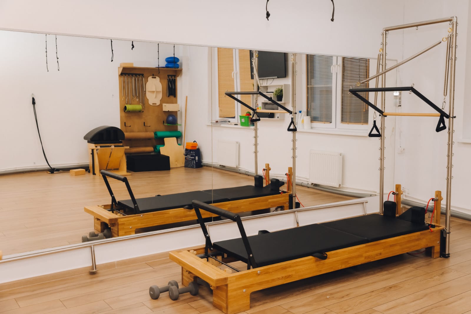 Реформер с башней сочетает в себе 2 вида тренажеров
