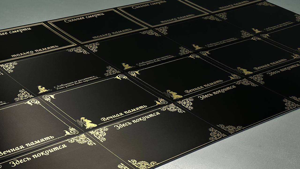 Компания ООО «Элегант-принт» производит ритуальные таблички на кресты и памятники. Таблички изготовлены из оцинкованной стали толщиной 0,5 мм.
