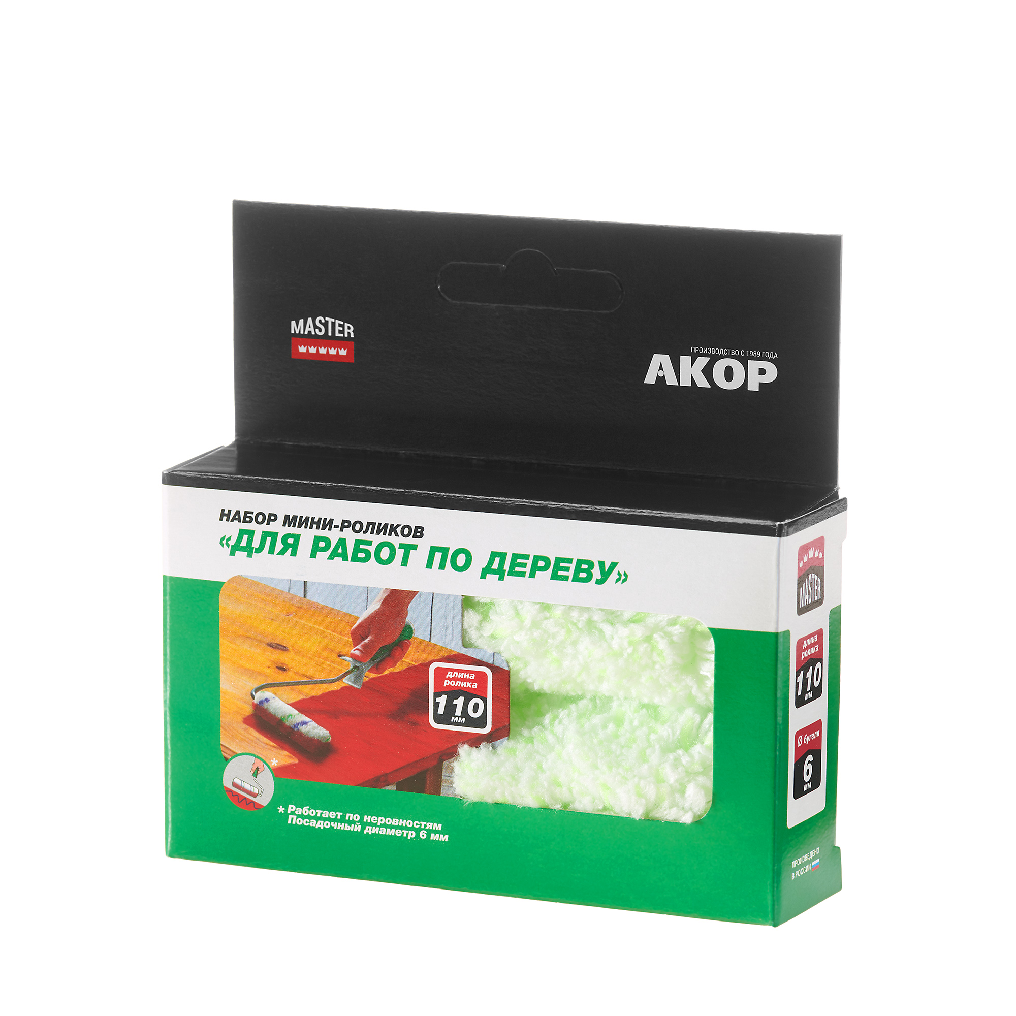 Наборы мини-роликов для работ по дереву серии «Мастер» по 2 и 3 штуки в упаковке. Применяются для покраски, пропитки, грунтовки различных типов поверхностей. Текстиль из износостойкого микроволокна.