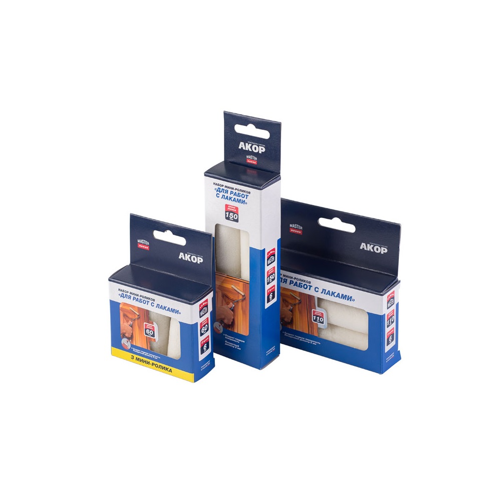 Наборы мини-роликов для лака по 2 и 3 штуки в упаковке серии «Мастер». Высокая плотность и низкий ворс текстиля позволяют идеально лакировать любую поверхность тончайшим слоем. Упаковка содержит полную информацию по применению и уходу за инструментом, а также качественные характеристики изделий.