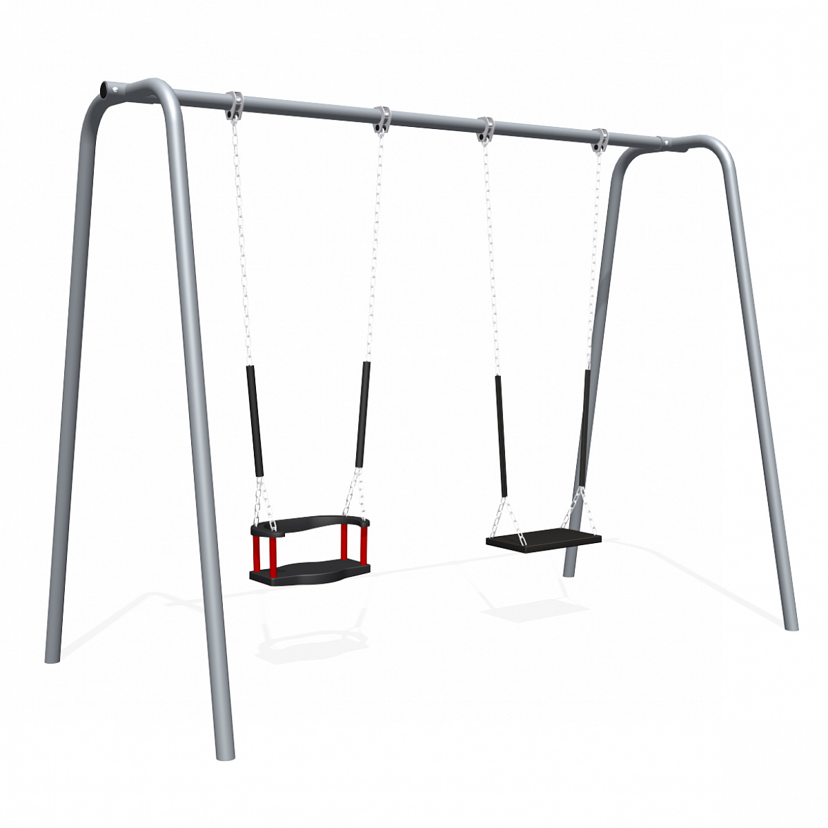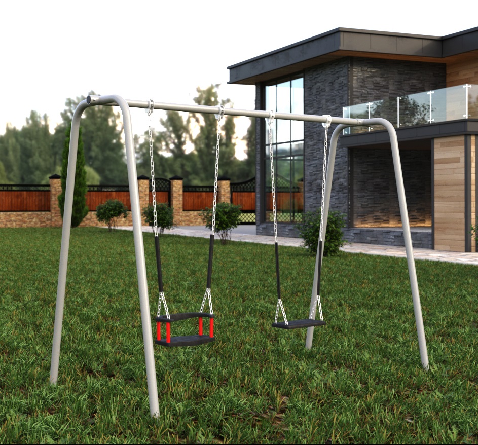 Качели являются прекрасным дополнением к игровой площадке. Двойные качели оптимально подойдут для семьи с двумя и более детьми. Качаться на них могут одновременно двое детей, поэтому никому не придется ждать своей очереди. В производстве используются качественные, безопасные материалы, соответствующие международным стандартам. Качели закреплены на опоре прочными цепями, это обеспечивает надежность фиксации и долговечность эксплуатации.