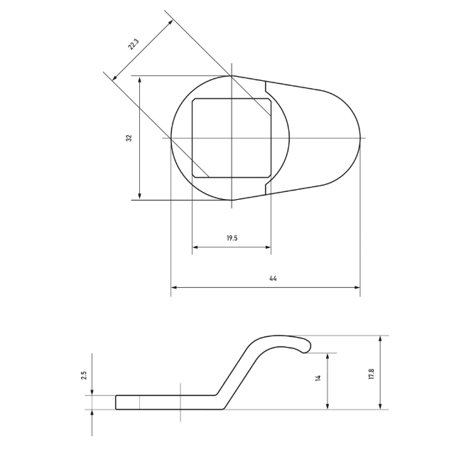 Ручка для замка, материал - полиамид, цвет - чёрный, размер 32х44мм, под замок с посадочным отверстием 20х22мм