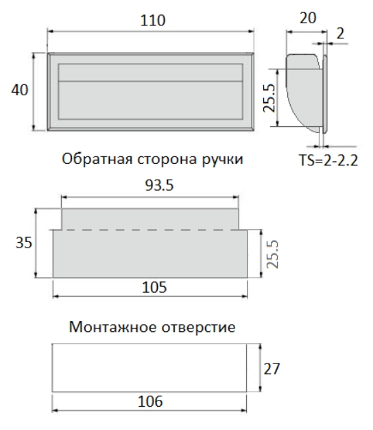 Ручка пластиковая для выдвижных ящиков, под посадочное отверстие 27*106 мм.
