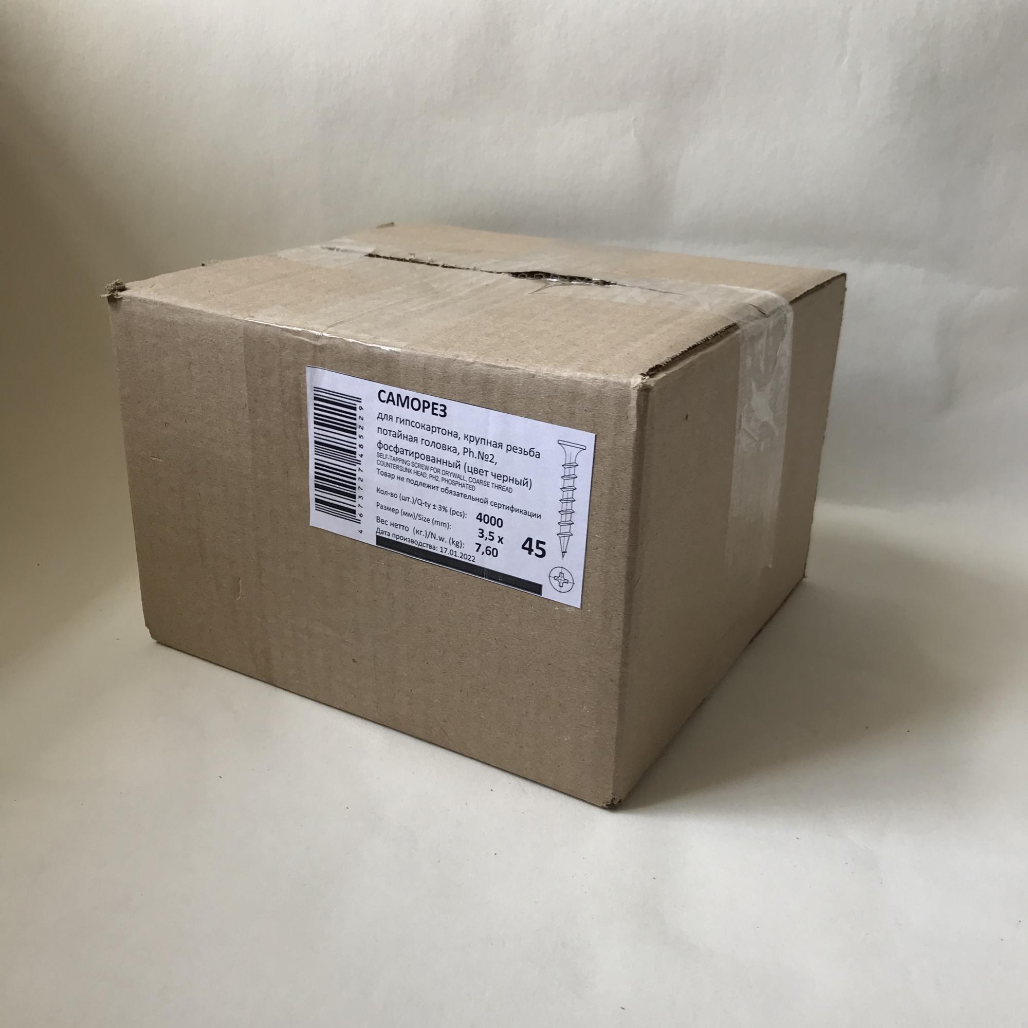 Саморез 3.5х45 по дереву и гипсокартону, крупный шаг, шлиц Ph, фосфатированный (черный).