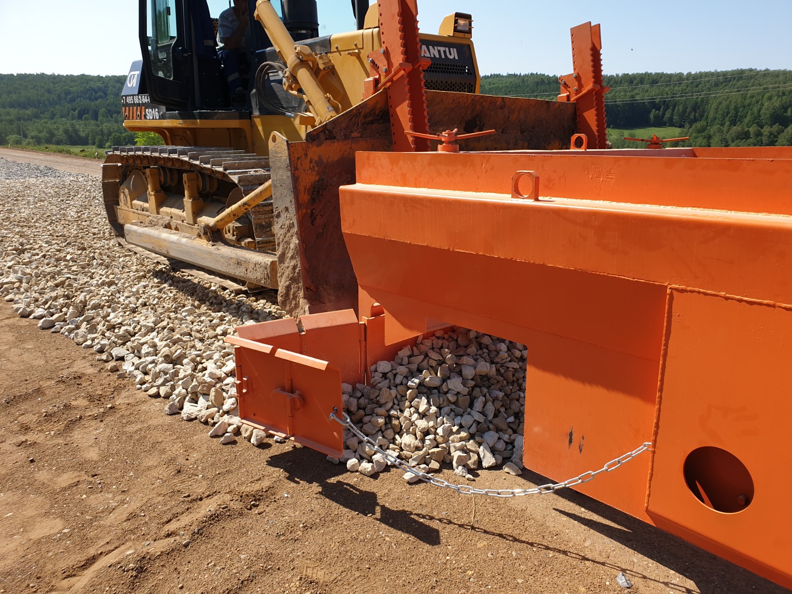 Щебнераспределитель предназначен для отсыпки щебня, гравия и иных сыпучих материалов на дорожное основание и обочины.
