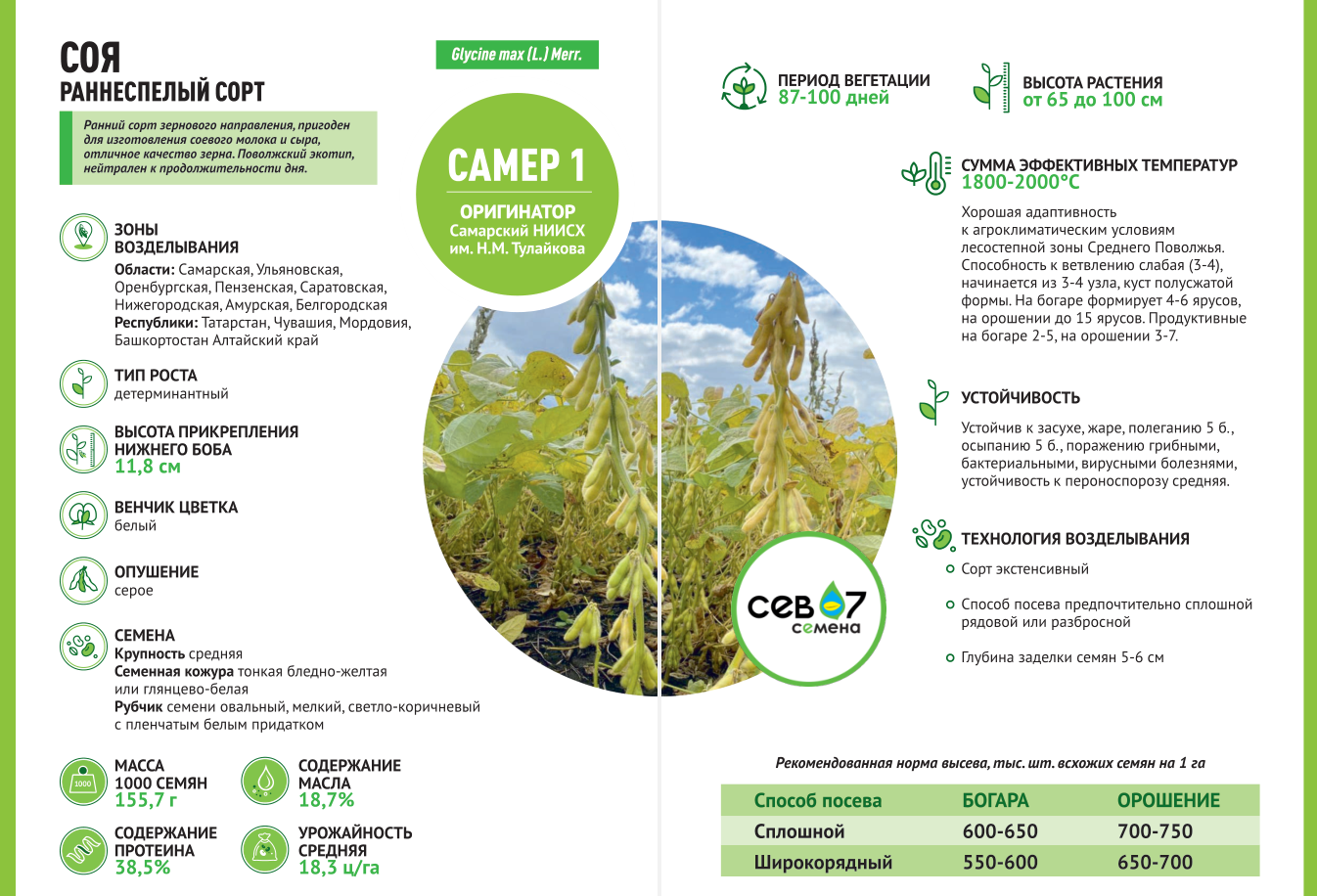 Компания СЕВ-07 предлагает семена сои САМЕР-1 (элита)