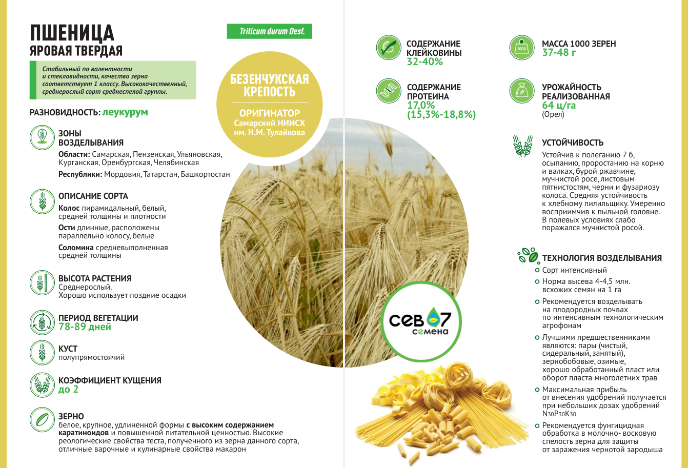 Компания СЕВ-07 предлагает семена яровой твёрдой пшеницы сорта Безенчукская...