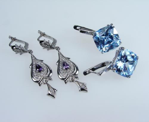 Серьги серебряные позолоченные и родированные