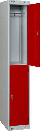 Тип: шкаф металлический на 4 отделения с 4 дверями, с полками и крючками для одежды