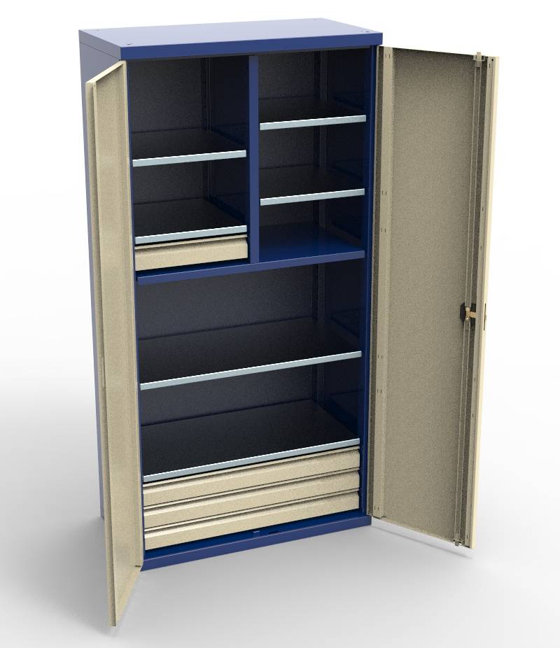 Корпус шкафа и выдвижные ящики изготавливаются из х/к стали толщиной 1 мм, полки из оцинкованной стали толщиной 2 мм.