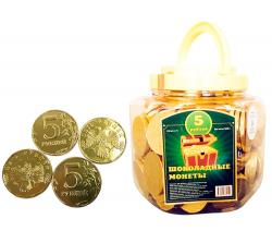 Сладкие монеты «5 Рублей» в золотой фольге — отличный недорогой подарок для детей! Монеты изготовлены из качественной кондитерской глазури с высоким содержанием какао-порошка.