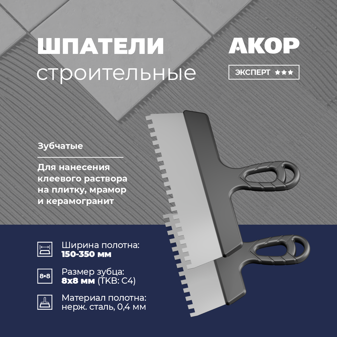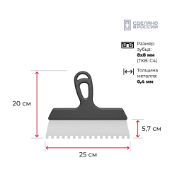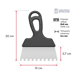 Усиленная эргономичная ручка с объемным ухватом обеспечивает удобство и увеличивает производительность шпателя по сравнению с аналогами, а покрытие стали позволяет использовать изделие продолжительное время.
