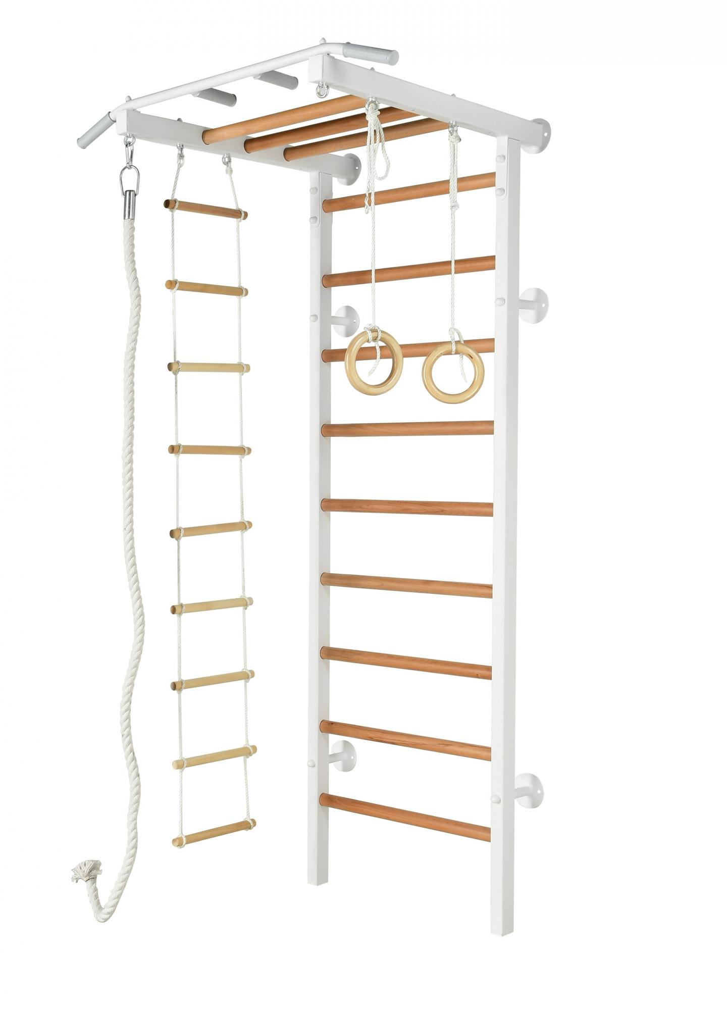 Может комплектоваться канатом, веревочной лестницей, качелями, гимнастическими кольцами и другим навесным оборудованием