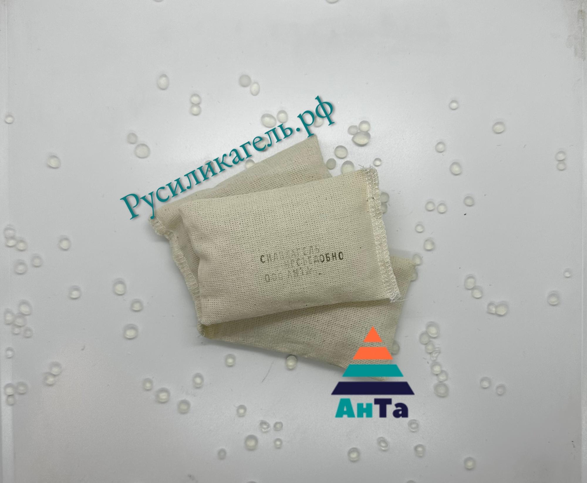 Силикагель марки КСМГ по ГОСТу 3956–76, фасованный в специальный тканевый мешочек по ТУ 20.13.24-001-20298088-2018. Прочность хлопковой ткани позволяет использовать многократно продукт.