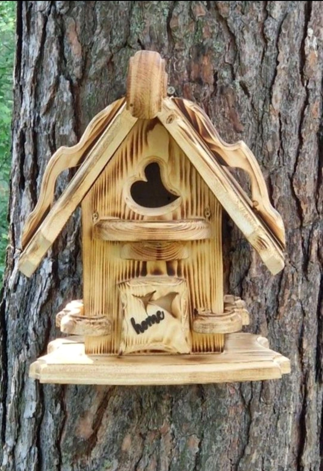 Скворечник для птиц весит всего 6.2 кг и изготовлен из массива натурального дерева. Его поверхность отшлифована.