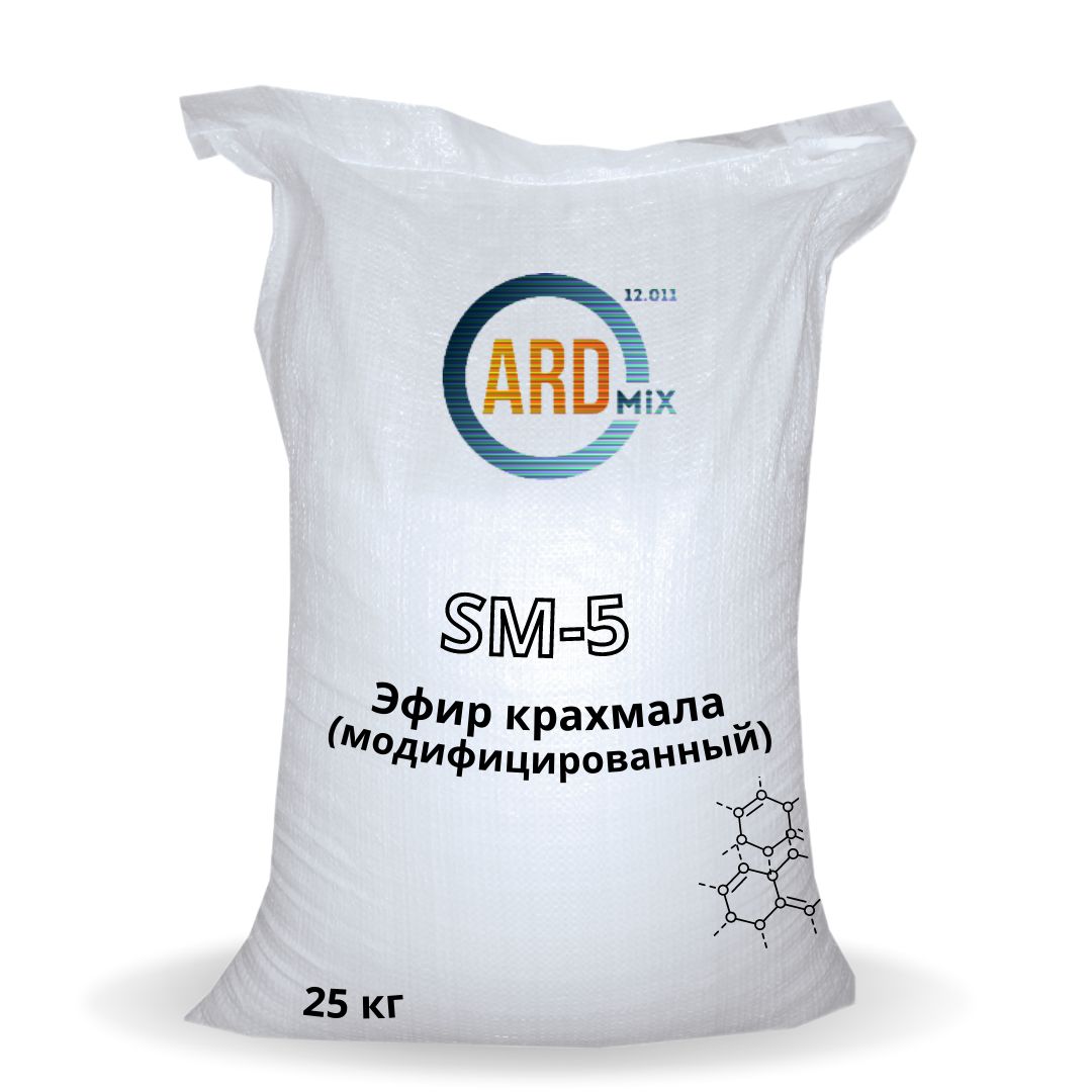 Эфир крахмала SM-5 улучшает укладываемость и перерабатывемость раствораю. Повышает фиксирующую способность.